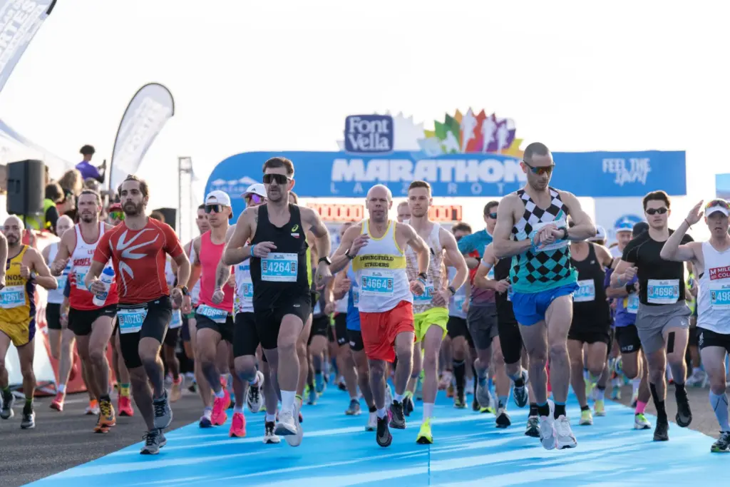 A las 8:00 horas se dio la salida de la modalidad maratón, con dorsales agotados desde hace meses y más de 1.200 corredores afrontando un recorrido que los llevó desde Costa Teguise hasta Puerto del Carmen y regreso, atravesando los municipios de Teguise, Arrecife, San Bartolomé y Tías, siempre con el océano Atlántico como compañero de viaje.
