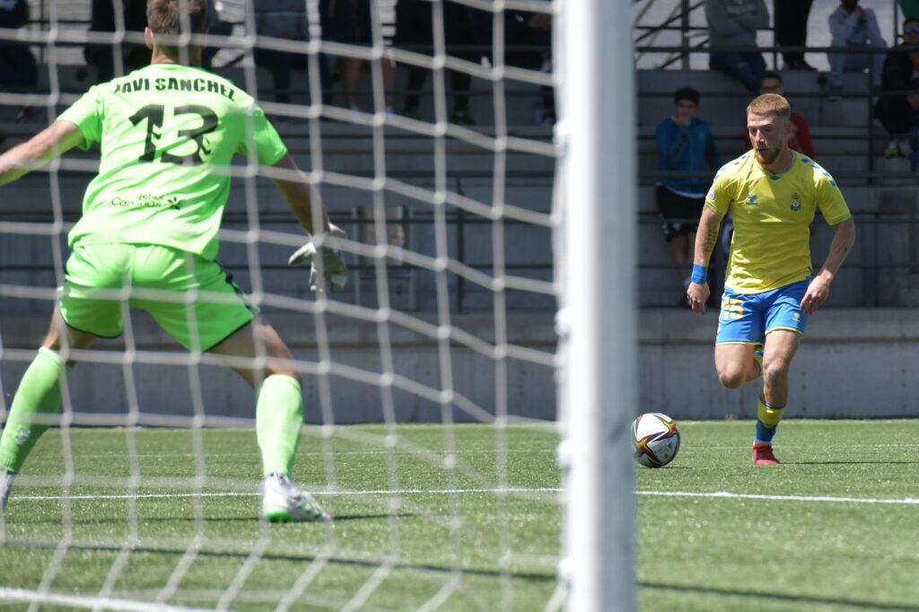 Las Palmas Atlético niveló el partido en el minuto 33 tras un córner desde la izquierda que culminó de remate inapelable Cristian Abreu, tras cabezazo previo del andaluz Fran Carmona.