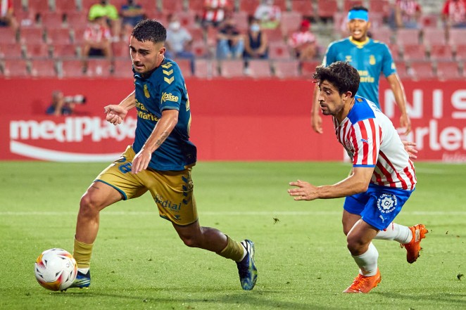Los amarillos pudieron controlar a nivel defensivo al Girona. En la primera parte no hubo jugadas relevantes en las que tuviera que intervenir Raúl Fernández. A medida que avanzaron los minutos Las Palmas logró desplegarse en campo adversario e, incluso, intentó acercarse al gol con una chilena de Peñaranda y en un disparo lejano de Sergi Cardona, que se fue por encima de la portería de Juan Carlos.
