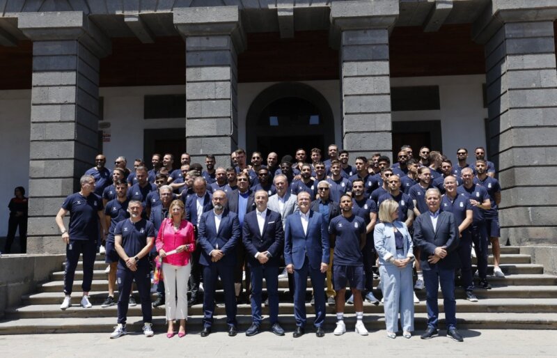 Plantilla, cuerpo técnico y consejo de administración tienen una apretada jornada de visitas a instituciones públicas y a la Virgen del Pino tras lograr el ascenso