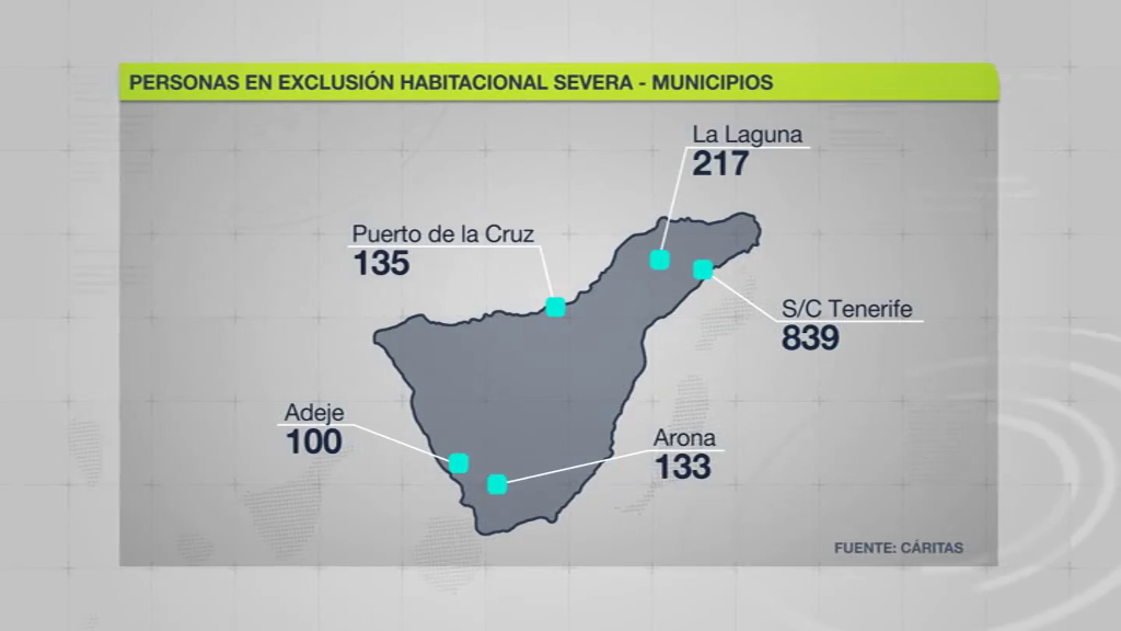 La zona metropolitana es donde más se dan estas situaciones de exclusión, que también han crecido en el sur de la isla. Puerto de la Cruz, Arona y Adeje son los tres municipios con más personas que viven en la calle o en infraviviendas por detrás de Santa Cruz y La Laguna.