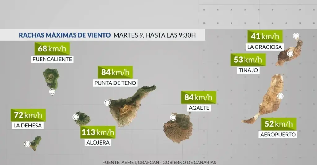 A primera hora de la mañana, las rachas de viento han alcanzado los 100 km/h en Alajeró, La Gomera.