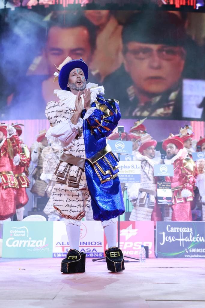 Por su parte, la murga Chacho Tú subió al escenario en segundo lugar bajo la batuta del director Javier Guerra Fez. Fundada en 2003, sus 84 componentes han lucido la alegoría ‘Chacho tú, dos euros más!’. El tema interpretado fue ‘Concurso de papel’, iniciada con una actuación de timple.