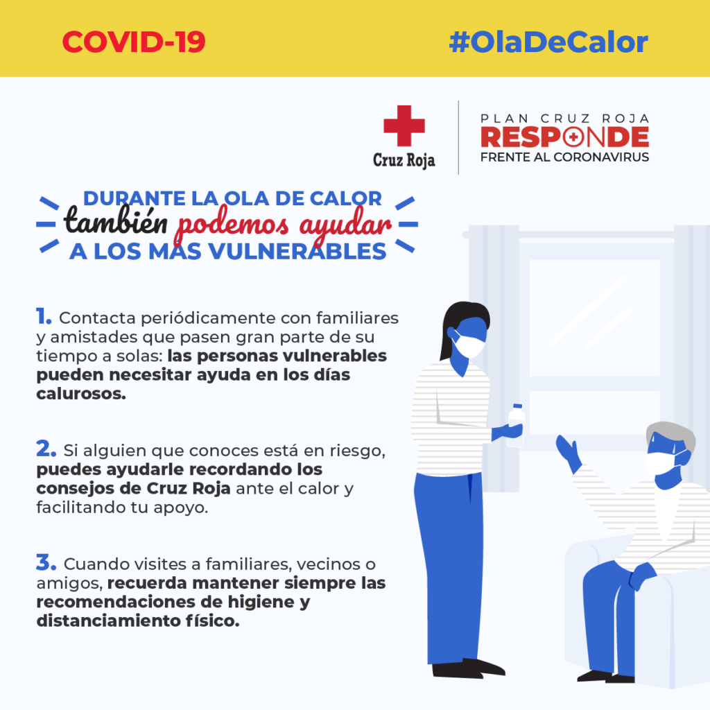 La institución contempla la necesidad de emitir este catálogo de indicaciones debido a la vulnerabilidad de ciertos grupos frente a las olas de calor. “El calor no afecta a todas las personas por igual, entre las más vulnerables encontramos a las personas mayores, especialmente las que viven solas o son dependientes y, por ello, tenemos que estar especialmente atentos con ellas”, informa Cristina Ferrero, del área de Salud de Cruz Roja Española.
