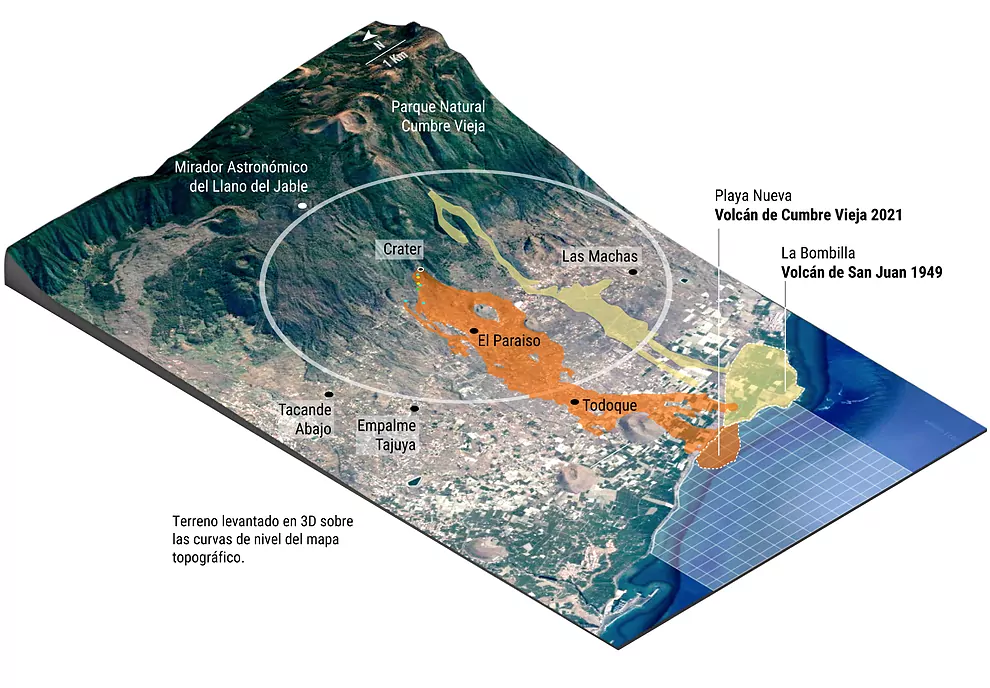 Gráfico de los terrenos arrasados y ensanchados tras el paso de la colada del Cumbre Vieja, La Palma. Fuente: Unión Europea