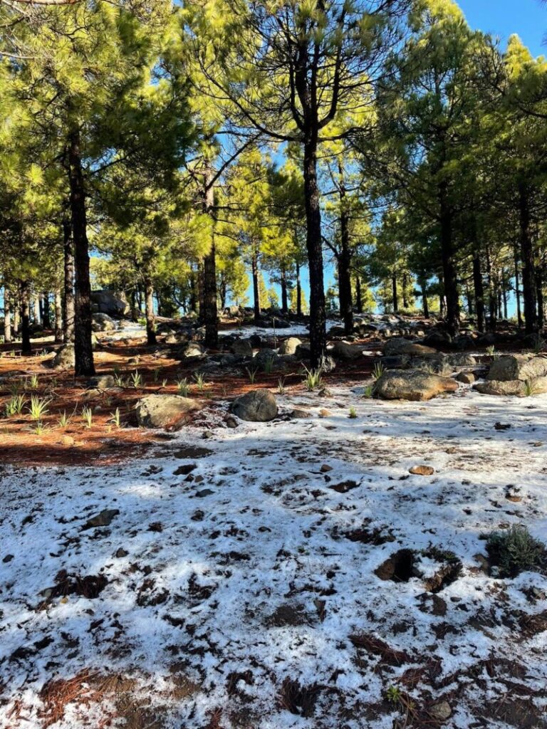 Más copiosa ha sido la nevada en la isla de La Palma, donde ha llegado a alcanzar un espesor entre los 10 y 15 centímetros en en la cumbre y en cotas superiores a los 1.900 metros.