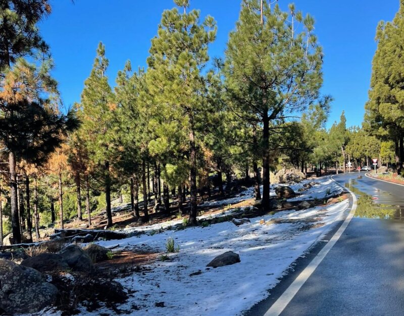 El Cabildo de Gran Canaria cerró por la mañana al tráfico por hielo en la calzada la GC-134, que conduce al Pico de las Nieves, y la GC-135, una bifurcación de la anterior. Ambas vías ya están de nuevo abiertas al tráfico.