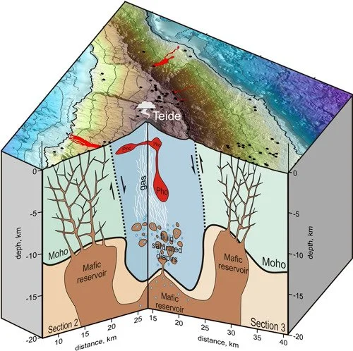Existen múltiples evidencias petrológicas y geoquímicas que nos indican su procedencia, tiempo de residencia en reservorios someros y mecanismos de erupción que nos indican que no forman parte del sitema Teide-Pico Viejo. El Tajogaite en La Palma es el último ejemplo en las islas.