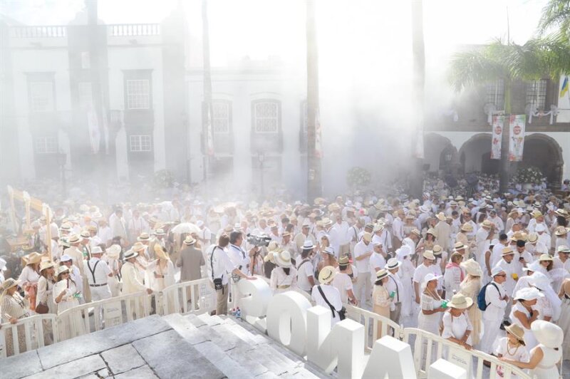 La jornada festiva deja numerosas imágenes para la historia. Santa Cruz de La Palma se viste de blanco, se llena de sonidos cubanos y tiene aroma de historia. Además hay numerosas imágenes curiosas que se recogen en esta jornada. Es el caso de una boda indiana celebrada en el Ayuntamiento de Santa Cruz de La Palma.