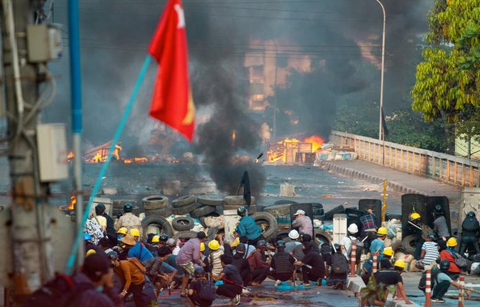 Los manifestantes reclaman que los uniformados restauren el sistema democrático, respeten los resultados de las elecciones de noviembre y la libertad para todos los detenidos por la junta militar.