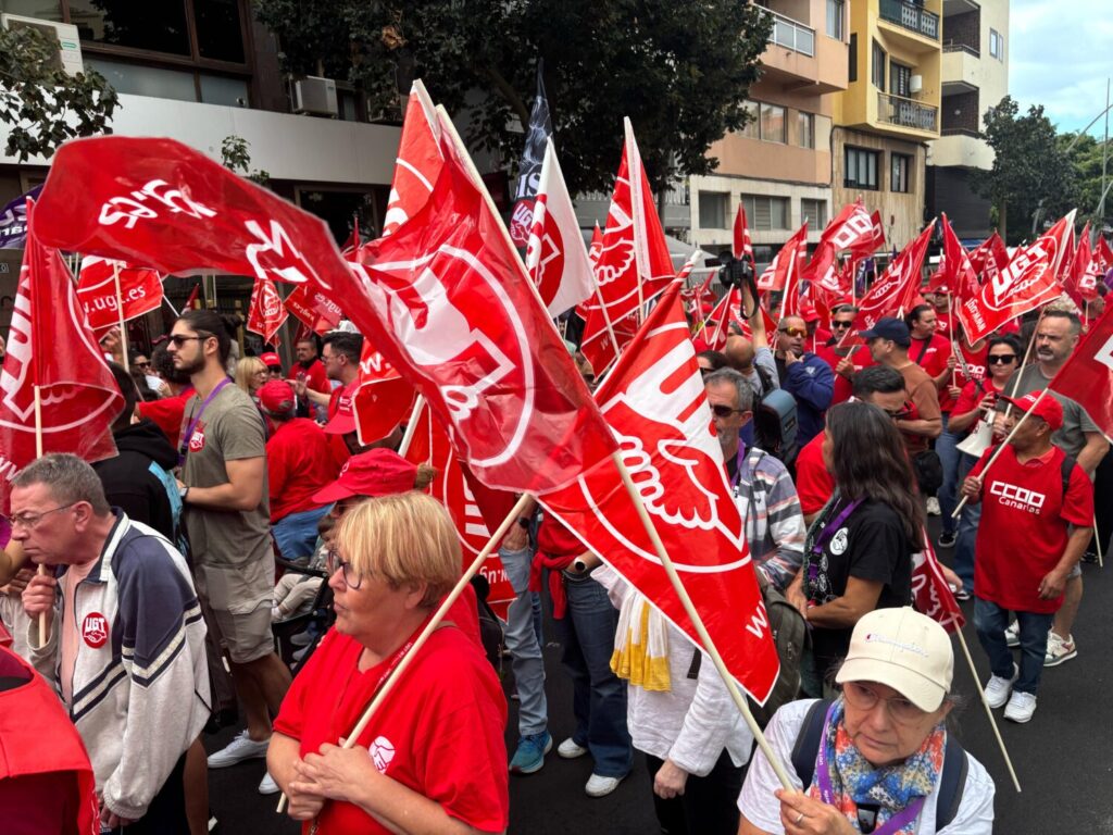 UGT y CCOO convocaron a la movilización en las islas, principalmente en Gran Canaria y en Tenerife, por la defensa de los derechos sociales y laborales y el foco puesto en la lucha por «un reparto más justo de la riqueza«, especialmente la derivada del turismo.