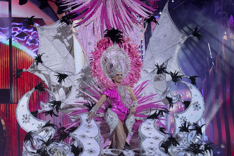 La candidata, María Teno Nevado, representante del Excelentísimo Ayuntamiento de la Ciudad de Gáldar, se impuso con la fantasía «Sinfonía española» diseñada por Alberto Santana Jiménez y Universo GC