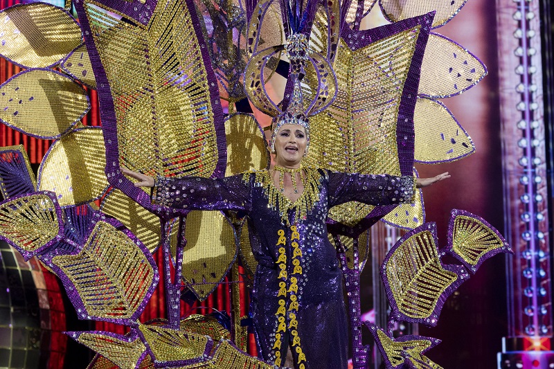 Manuela Teno Nevado estrena el trono de la corte de «Studio 54» con una puesta en escena con mucho arte y un toque flamenco que defendió al ritmo de grandes clásicos de la banda británica de rock Queen. La representante del Excelentísimo Ayuntamiento de la Ciudad de Gáldar, con la fantasía «Sinfonía española», diseñada por Alberto Santana Jiménez y Universo GC, se hizo este domingo 12 de febrero con el título de Gran Dama ocupando el primer trono de la corte del Carnaval de Las Palmas de Gran Canaria 2023. Además del título de veterana regente, Manuela Tena Nevado ha recibido un cheque regalo de 500 euros para cuidados, obsequio de Hebe, Centro de Envejecimiento Activo.