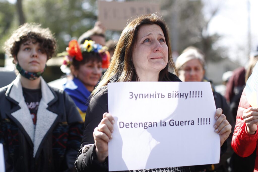 A la protesta se han sumado también algunas personas de origen ruso que están igualmente en contra de la guerra y del líder ruso, y que portaban banderas del país y una pancarta de «rusos contra la guerra».