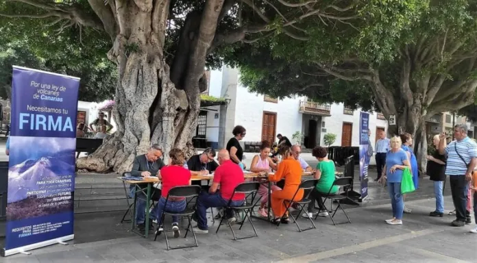 El objetivo de recoger al menos 15.000 firmas ya está más cerca para el grupo de afectados por la erupción en La Palma que recorre el Archipiélago en busca de suficiente apoyo social para que el Parlamento canario debata la llamada Ley de Volcanes, con la que se pretende garantizar los derechos de los damnificados por catástrofes como la ocurrida en 2021 en el Valle de Aridane.