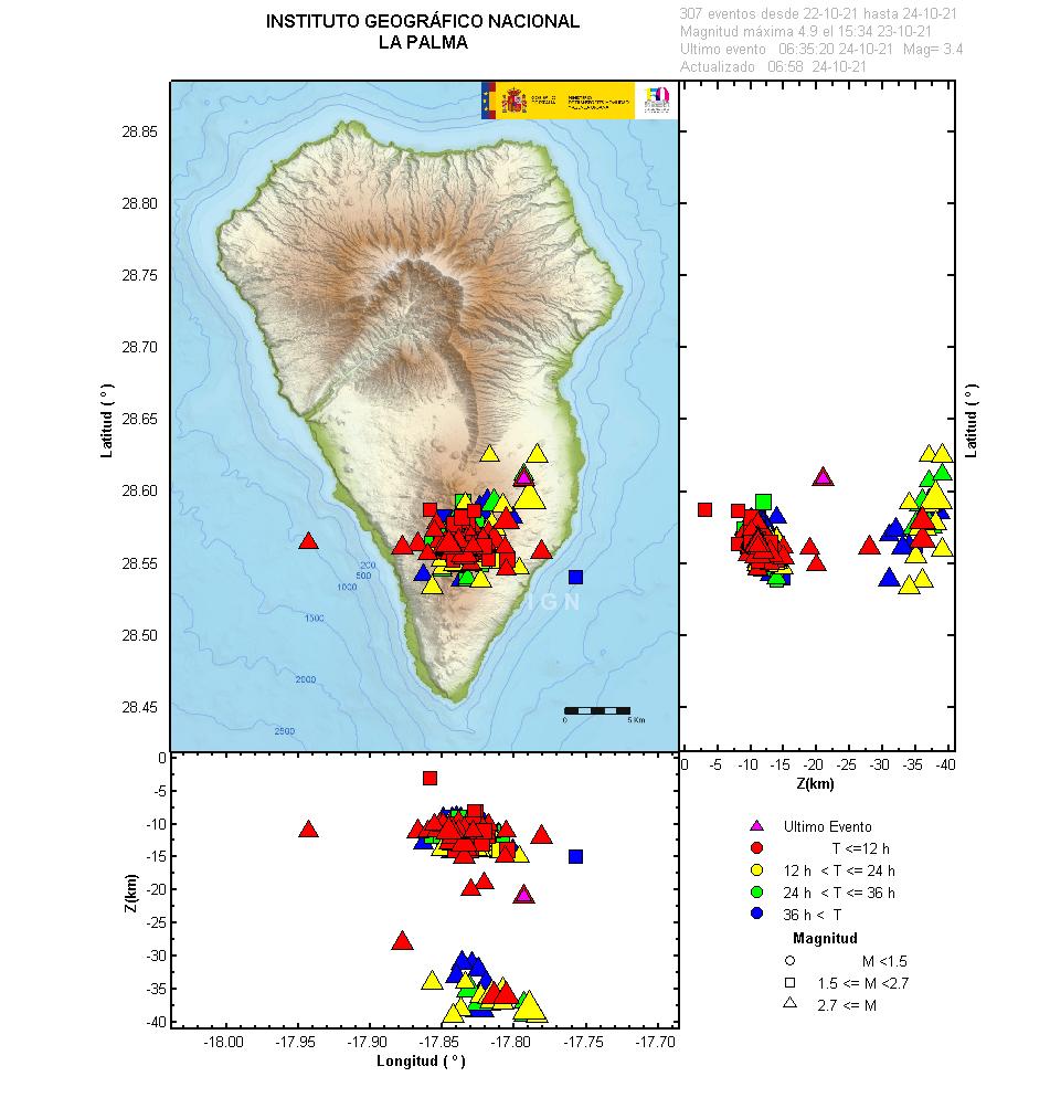Más de 80 seísmos se han registrado en la isla de La Palma desde la pasada medianoche hasta las 07:00 horas de esta mañana, aunque ninguno de ellos por encima de 3,5 de magnitud, según los datos del Instituto Geográfico Nacional (IGN).