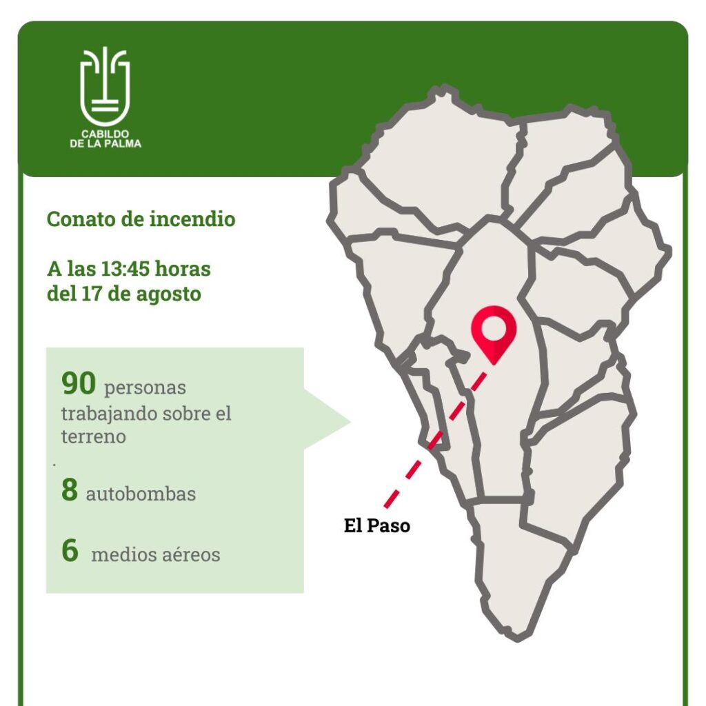 En el lugar trabajan más de 90 efectivos, entre personal de Medio Ambiente del Cabildo de La Palma, BRIF y EIRIF, así como Bomberos, Guardia Civil, Policía Local y agente del Parque Nacional de La Caldera de Taburiente, Protección Civil, AEA, Alfa Tango, Cruz Roja, además de gestores del Cecopin La Palma.