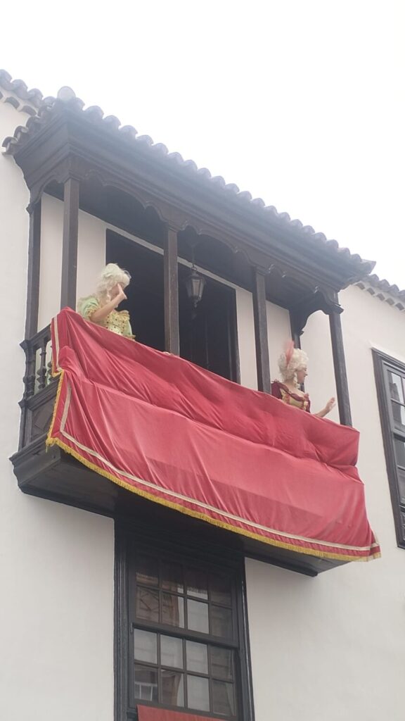 Durante la tarde, las parejas fueron las encargadas de engalanar balcones y calles para convertir a Santa Cruz de La Palma por unos minutos en un escenario propio del siglo XVIII.