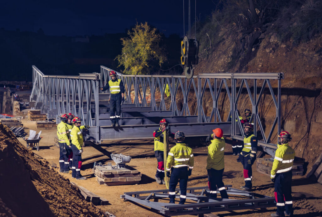 Consecuencias de la DANA | Efectivos de la UME comienzan el montaje del puente modular Mabey en Buñol