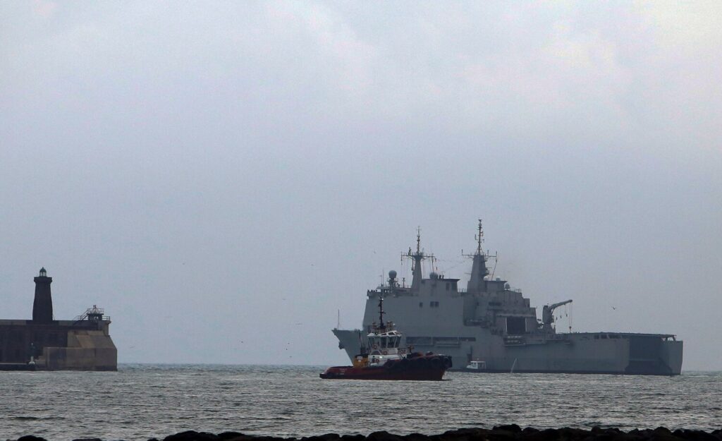 Según informa el Ministerio de Defensa en su cuenta de X, desembarcarán del buque 104 infantes de marina del Tercio de la Armada, camiones con comida, agua, material de apoyo y dos helicópteros SH-60F.