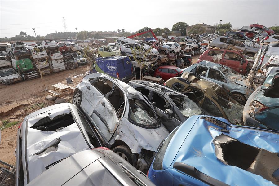 La dana ha dejado tirados más de 100.000 vehículos en las carreteras en torno a la zona más castigada por el temporal en Valencia, que empiezan a ser retirados por los servicios de grúas y por los desguaces de la zona, que, no obstante, necesitarán de ayuda de otras comunidades para poder gestionarlo.