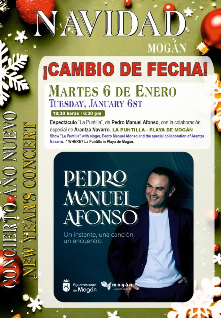 También, el Ayuntamiento de Mogán ha decidido posponer el concierto de Año Nuevo de Pedro Manuel Afonso al martes 6 de enero, para garantizar que el evento se celebre en las mejores condiciones posibles y el disfrute de las personas asistentes. El espectáculo será a las 18:30 horas en la zona conocida como ‘La Puntilla’ de Playa de Mogán.
