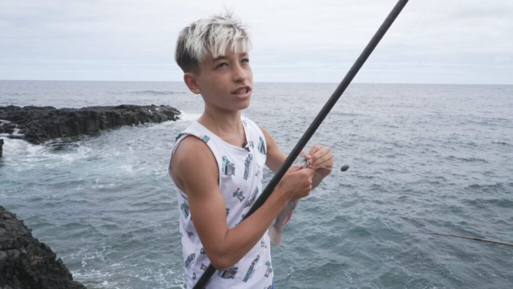 Y también, muy en contacto con el agua que rodea nuestras Islas, están Gabriel y Fabio, unos hermanos de La Palma que no hay cosa que les guste más que la pesca. A su corta edad, con quince y doce años, son unos auténticos expertos en este arte del que disfrutan bajo la atenta mirada de su abuelo.