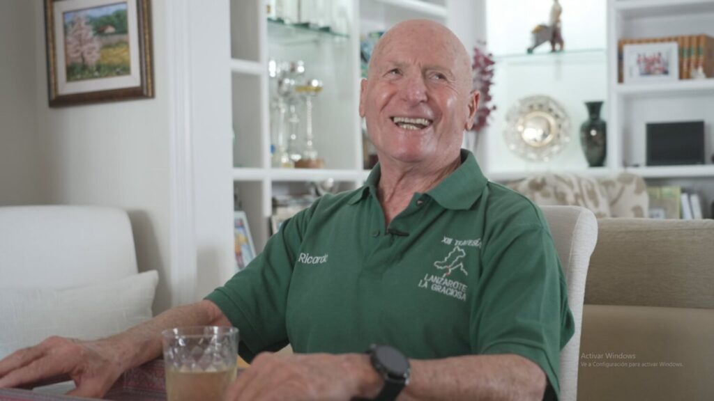 Ricardo, a sus ochenta y siete años, se mueve como pez en el agua haciendo triathlones sin parar desde que comenzó a nadar a los sesenta y cinco. El mar se ha convertido en su medio natural y donde pasa innumerables horas. El año pasado participó en once travesías y este año va por la cuarta.