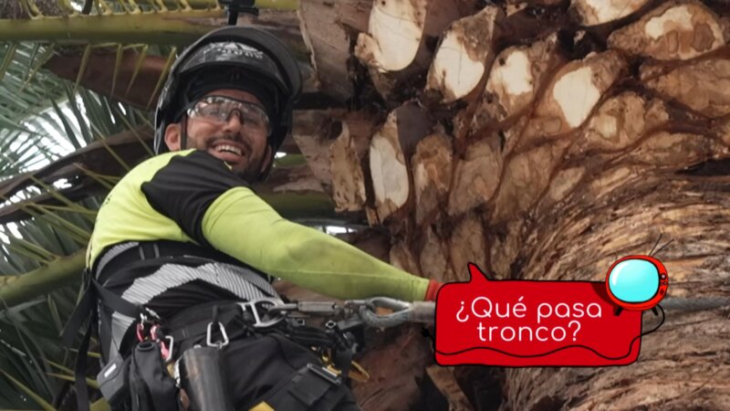 Yeray se pasa hasta el ocaso colgado de una palmera A las cinco de la mañana le suena el despertador y empieza su jornada. Este joven que estudió Técnico Forestal y Pasijístico no tiene vértigo, es un apasionado de lo que hace y también siente que es un oficio que no se debe perder. Su día lo hace más ameno escuchando la música que más le gusta y también con las visitas de su madre, que lo cuida llevándole el desayuno todos los días a su puesto de trabajo.