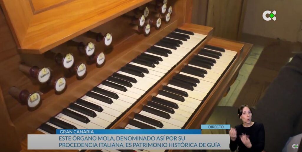 Este instrumento que cumple 125 años fue creado por el turinés Giuseppe Molla, y estrenado en 1900 por el insigne músico Camille Saint-Säens con un concierto magistral en una de sus siete visitas a la isla de Gran Canaria. El órgano mola, denominado así por su origen italiano, es Patrimonio Histórico de Santa María de Guía. Se trata del único en su categoría que fue traído a Canarias en este periodo de tiempo.