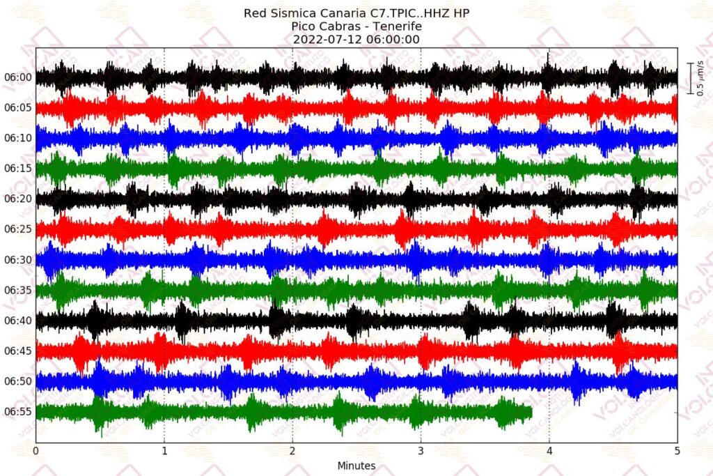 Hoy martes 12 de julio de 2022 y desde las 05:50 horas (hora canaria), la Red Sísmica Canaria – que opera el Instituto Volcanológico de Canarias (INVOLCAN) – ha registrado un enjambre de eventos híbridos de muy baja magnitud localizados bajo el volcán Teide.
