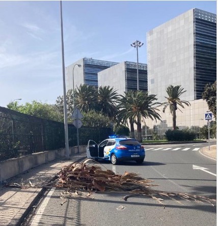 En Gran Canaria, las fuertes rachas de viento han causado diversas incidencias en la capital, como la caída de vallas y planchas a la vía pública y atendidas por la Policía Local.