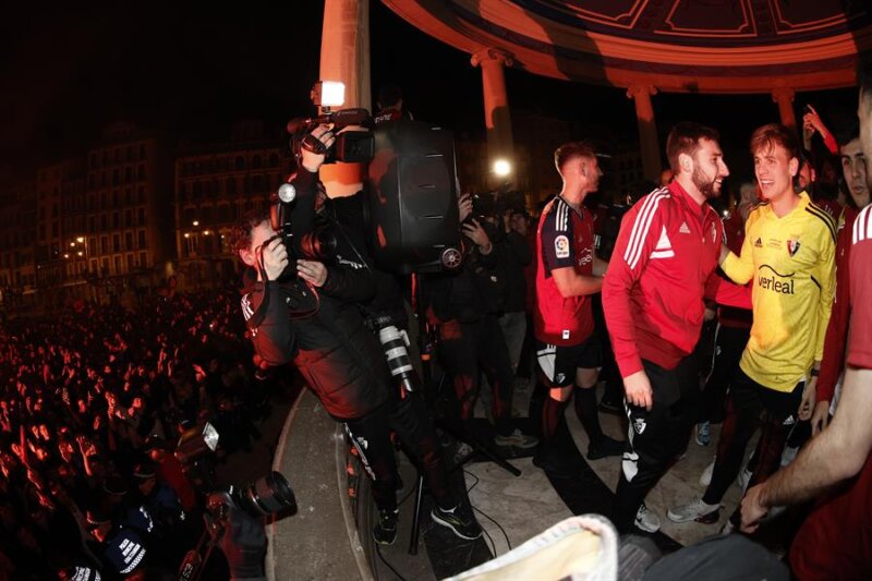 La fiesta que comenzó cuando el colegiado pitó el final del partido que dio el pase de Osasuna a la final se ha prolongado hasta la madrugada en las calles de Pamplona, con la llegada del equipo a la plaza del Castillo como punto álgido de la celebración.