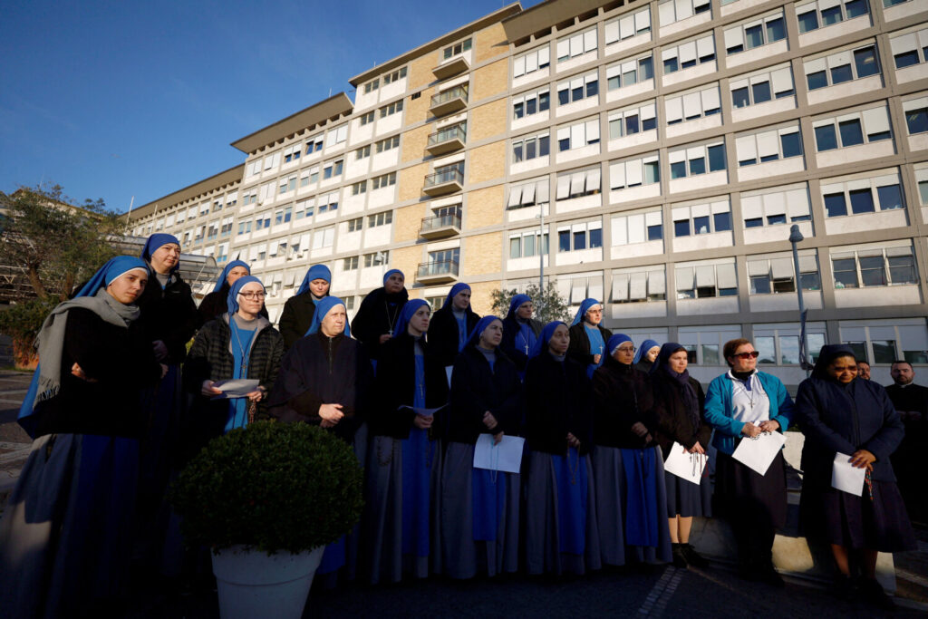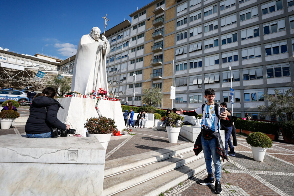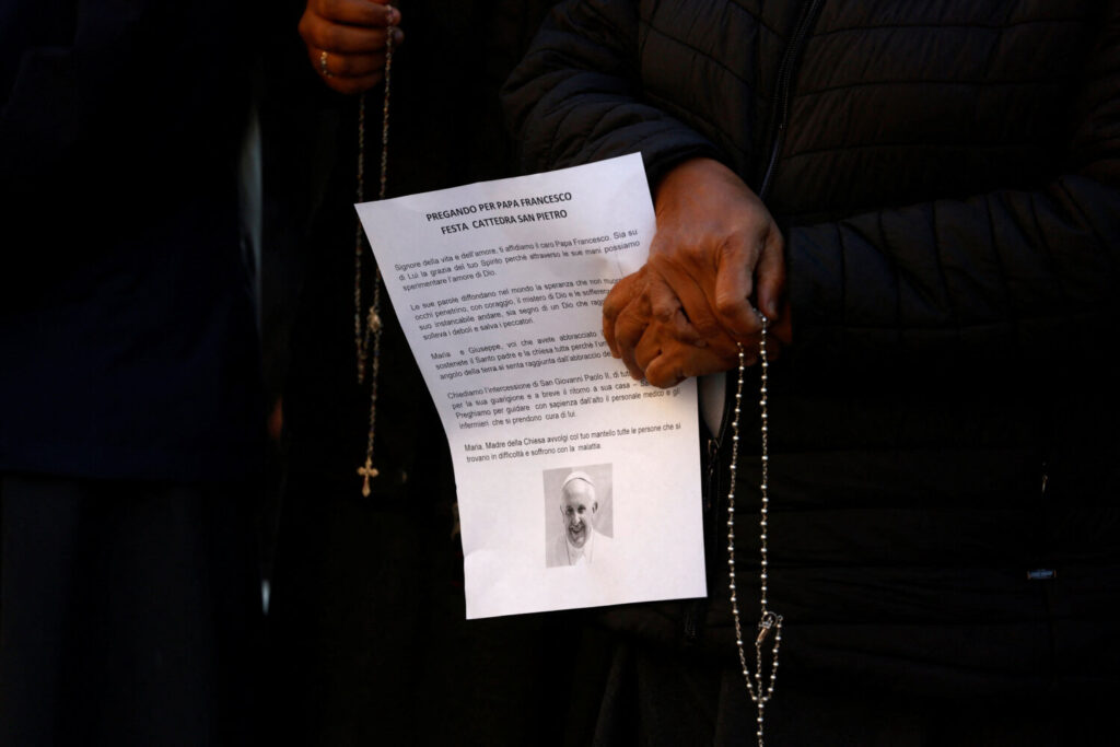 Monjas rezan frente al Hospital Gemelli, donde el Papa Francisco está ingresado para recibir tratamiento, en Roma, Italia, 22 de febrero de 2025. REUTERS/Vincenzo LivieriMonjas rezan junto a la estatua del difunto Papa Juan Pablo II en el exterior del Hospital Gemelli, donde el Papa Francisco está ingresado para recibir tratamiento, en Roma, Italia, 22 de febrero de 2025. REUTERS/Vincenzo Livieri Velas decoradas, flores y fotos del Papa Francisco se colocan en la base de la estatua del difunto Papa Juan Pablo II fuera del Hospital Gemelli, donde el Papa Francisco está ingresado para recibir tratamiento, en Roma, Italia, 22 de febrero de 2025. REUTERS/Vincenzo LivieriVelas decoradas, flores y fotos del Papa Francisco se colocan en la base de la estatua del difunto Papa Juan Pablo II fuera del Hospital Gemelli, donde el Papa Francisco está ingresado para recibir tratamiento, en Roma, Italia, 22 de febrero de 2025. REUTERS/Vincenzo LivieriUn retrato del Papa Francisco se muestra en la Basílica San José de Flores donde el pontífice, entonces cardenal Jorge Bergoglio, sirvió una vez, en Buenos Aires, Argentina, 21 de febrero de 2025. REUTERS/Tomas CuestaVarias personas rezan el Rosario frente al Hospital Gemelli, donde el Papa Francisco está ingresado para recibir tratamiento, en Roma, Italia, 22 de febrero de 2025. REUTERS/Vincenzo LivieriUn retrato del Papa Francisco se muestra en la Basílica San José de Flores donde el pontífice, entonces cardenal Jorge Bergoglio, sirvió una vez, en Buenos Aires, Argentina 21 de febrero de 2025. REUTERS/Tomas CuestaUna monja sostiene un texto de oración por la salud del Papa Francisco durante un Rosario fuera del Hospital Gemelli, donde el Papa Francisco está ingresado para recibir tratamiento, en Roma, Italia, 22 de febrero de 2025. REUTERS/Vincenzo LivieriUn hombre reza ante la estatua del difunto Papa Juan Pablo II en el exterior del Hospital Gemelli, donde el Papa Francisco está ingresado para recibir tratamiento, en Roma, Italia, el 22 de febrero de 2025. REUTERS/Vincenzo LivieriUna monja coloca una planta en la estatua del difunto Papa Juan Pablo II en el exterior del Hospital Gemelli, donde el Papa Francisco está ingresado para recibir tratamiento, en Roma, Italia, 22 de febrero de 2025. REUTERS/Vincenzo LivieriMonjas rezan el Rosario frente al Hospital Gemelli, donde el Papa Francisco está ingresado para recibir tratamiento, en Roma, Italia, 22 de febrero de 2025. REUTERS/Vincenzo Livieri Varias personas rezan frente al Hospital Gemelli, donde el Papa Francisco está ingresado para recibir tratamiento, en Roma, Italia, 22 de febrero de 2025. REUTERS/Vincenzo LivieriMonjas rezan frente al Hospital Gemelli, donde el Papa Francisco está ingresado para recibir tratamiento, en Roma, Italia, 22 de febrero de 2025. REUTERS/Vincenzo LivieriUna mujer coloca un rosario en la estatua del difunto Papa Juan Pablo II en el exterior del Hospital Gemelli, donde el Papa Francisco está ingresado para recibir tratamiento, en Roma, Italia, 22 de febrero de 2025. REUTERS/Vincenzo LivieriVarias personas rezan junto a la estatua del difunto Papa Juan Pablo II en el exterior del Hospital Gemelli, donde el Papa Francisco está ingresado para recibir tratamiento, en Roma, Italia, el 22 de febrero de 2025. REUTERS/Vincenzo LivieriUn retrato enmarcado del Papa Francisco se muestra en la Basílica San José de Flores donde el pontífice, entonces cardenal Jorge Bergoglio, sirvió una vez, en Buenos Aires, Argentina 21 de febrero de 2025. REUTERS/Tomas CuestaVelas decoradas, flores y fotos del Papa Francisco junto a la estatua del difunto Papa Juan Pablo II en el exterior del Hospital Gemelli, donde el Papa Francisco está ingresado para recibir tratamiento, en Roma, Italia, el 22 de febrero de 2025. REUTERS/Vincenzo LivieriUn hombre utiliza su teléfono móvil junto a la estatua del difunto Papa Juan Pablo II, en el exterior del Hospital Gemelli, donde el Papa Francisco está ingresado para recibir tratamiento, en Roma, Italia, 22 de febrero de 2025. REUTERS/Vincenzo LivieriVarias personas rezan el rosario a las puertas del hospital Gemelli, donde el Papa Francisco está ingresado para recibir tratamiento, en Roma, Italia, 22 de febrero de 2025. REUTERS/Vincenzo LivieriUna vista muestra la Basílica San José de Flores, donde el Papa Francisco, entonces Cardenal Jorge Bergoglio, una vez sirvió, en Buenos Aires, Argentina, 21 de febrero de 2025. REUTERS/Tomas CuestaMonjas rezan junto a la estatua del difunto Papa Juan Pablo II fuera del Hospital Gemelli, donde el Papa Francisco está ingresado para recibir tratamiento, en Roma, Italia, 22 de febrero de 2025. REUTERS/Ciro De Luca