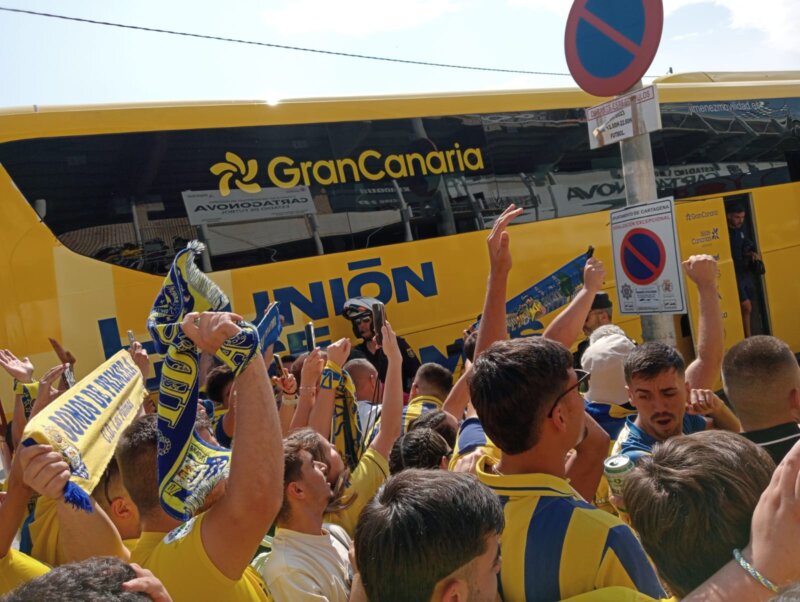 Imagen de la llegada de la UD Las Palmas al estadio del Cartagena Aficionados de Las Palmas en Cartagena.Imagen de aficionados de la UD Las Palmas desplazados a Cartagena