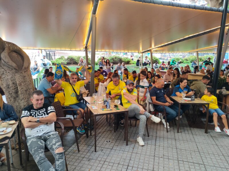 Imagen de aficionados de la UD Las Palmas siguiendo el partido Cartagena -UD Las Palmas desde varias terrazas de la capital grancanariaImagen plaza de La Victoria en Las Palmas de Gran Canaria preparada para celebrar el posible triunfo de la UD Las PalmasImagen de aficionados de la UD siguiendo el partido en la plaza de El Pilar en Las Palmas de Gran Canaria Imagen de aficionados de la UD siguiendo el partido en la plaza de El Pilar en Las Palmas de Gran Canaria