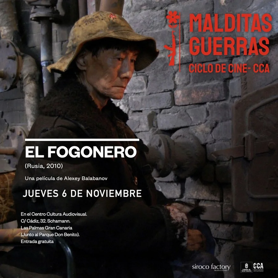 El ciclo cinematográfico “Malditas guerras”, organizado por el Centro de Cultura Audiovisual de Gran Canaria (CCA Gran Canaria), continúa su programación este jueves 6 de noviembre, a las 19:00 horas, con la proyección de la película rusa El fogonero, dirigida por Alekxéi Balabánov. La entrada será gratuita hasta completar aforo, en una sesión que, como es habitual, se ofrecerá en versión original subtitulada y contará con un coloquio posterior moderado por el crítico Javier Tolentino, comisario del ciclo.