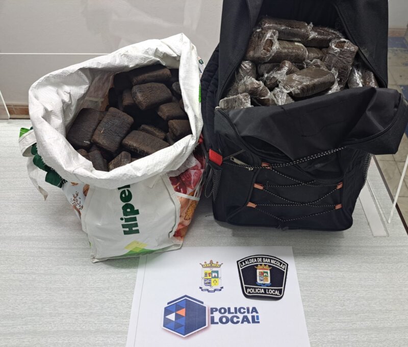Sospechando que pudiera tratarse de objetos sustraídos, agentes de la Policía Local de La Aldea de San Nicolás se trasladaron al lugar, comprobando la existencia de una bolsa de supermercado y una mochila en cuyo interior se encontraron varios ladrillos pequeños, algunos de ellos empaquetados en film transparente que, por el olor que desprendía y por su forma, identificaron como hachís.