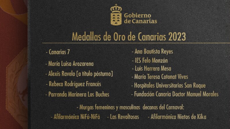 Además de los Premios Canarias, el Gobierno de Canarias concede 14 Medallas de Oro de Canarias.