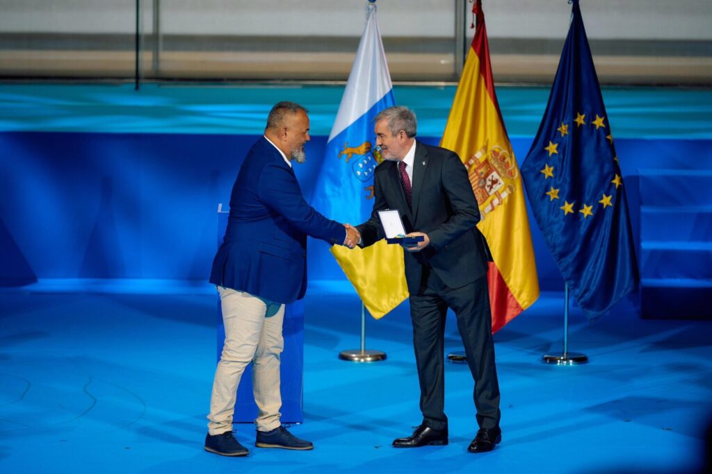 El jefe del Gobierno subrayó de igual manera la labor desarrollada por los distinguidos con las Medallas de Oro de Canarias, “personas y entidades que, desde el arte, el emprendimiento, la ciencia, la acción social o la cultura, han contribuido desde todas y cada una de nuestras islas a construir una Canarias mejor”. Las Medallas de Oro entregadas durante el acto institucional han recaído en la Unión Deportiva Las Palmas; Sociedad cultural, de recreo y deportiva Torrelavega; Andrés Sánchez Robayna; Yolanda Arencibia; Club Atletismo Teseida; Pastas La Isleña; Efigenia Borges; Agustín Fernández López; Aralda Rodríguez; Colectivo Guanches de Candelaria y Asociación Guanches de Güímar; Asociación Más Ruines que Caín; Costaleros Nuestra Señora del Carmen de La Isleta; Calixto Herrera; y Mestisay.