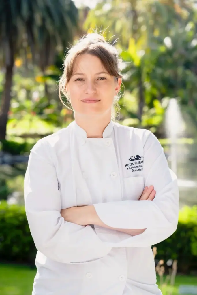 Ria Katharina Jahnke, chef ejecutiva del hotel Botánico (Puerto de la Cruz), detalla algunas de las bonanzas coquinarias de las cartas otoñales, citando primordialmente las setas y la parrilla, sin olvidar la trufa o precisamente el pescado de excelencia o los géneros cárnicos que pasan por el horno Josper. Excelente.