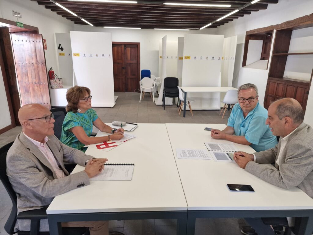 El Diputado del Común, Rafael Yanes, y la adjunta segunda de la Diputación del Común, Milagros Fuentes, se reunieron con el comisionado especial para la Reconstrucción de la isla de La Palma, Héctor Izquierdo, y con el coordinador del Área Económica de la Casa Massieu, en Los Llanos de Aridane, Miguel Ángel Pulido, para entregarles un informe en el que se reflejan las quejas ciudadanas recibidas en la Institución como consecuencia de los efectos producidos por el volcán de La Palma.