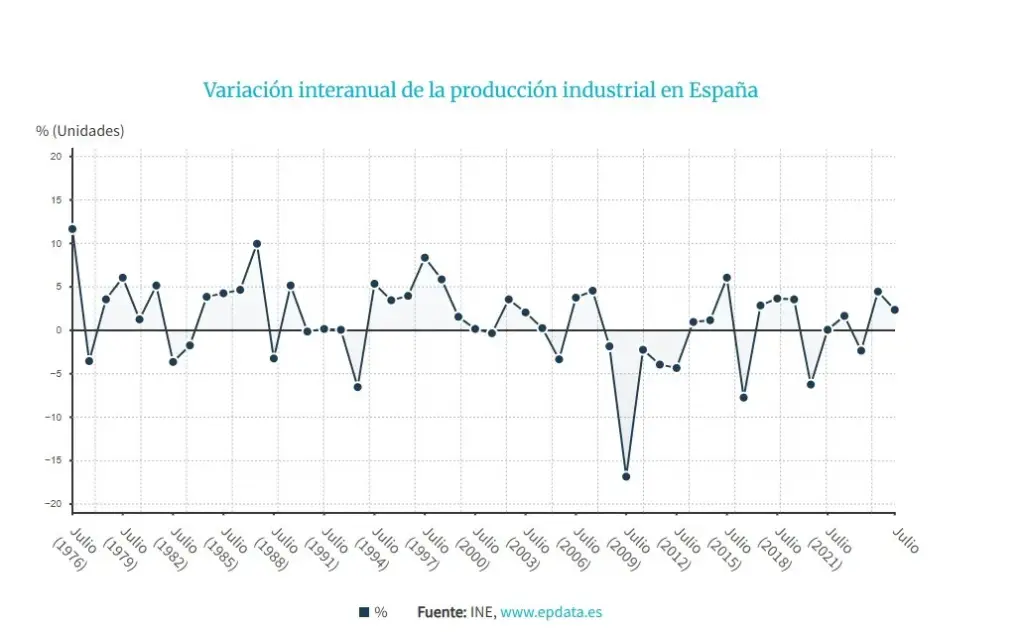 La producción industrial en las islas sube en julio pero menos en el resto del país, donde ha sido un 1,2% menos