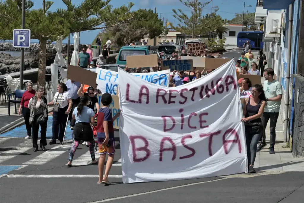 Unos cien vecinos del pueblo de La Restinga (El Pinar) se han manifestado este sábado para protestar por la gestión de la crisis migratoria en esta localidad herreña, la ocupación del muelle pesquero y la destrucción de cayucos en sus instalaciones, entre otras reivindicaciones.
