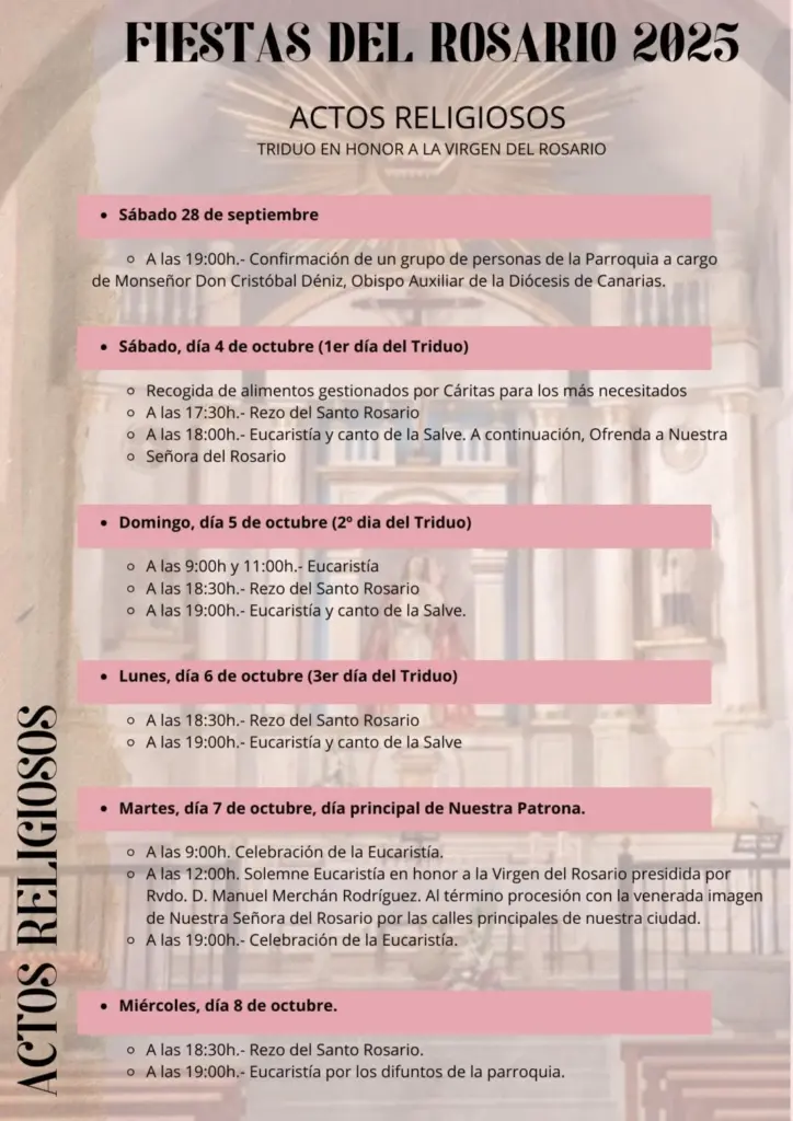 El programa de las Fiestas en Honor a Nuestra Señora del Rosario 2025 se extenderá del 21 de septiembre al 11 de octubre con una oferta amplia y variada