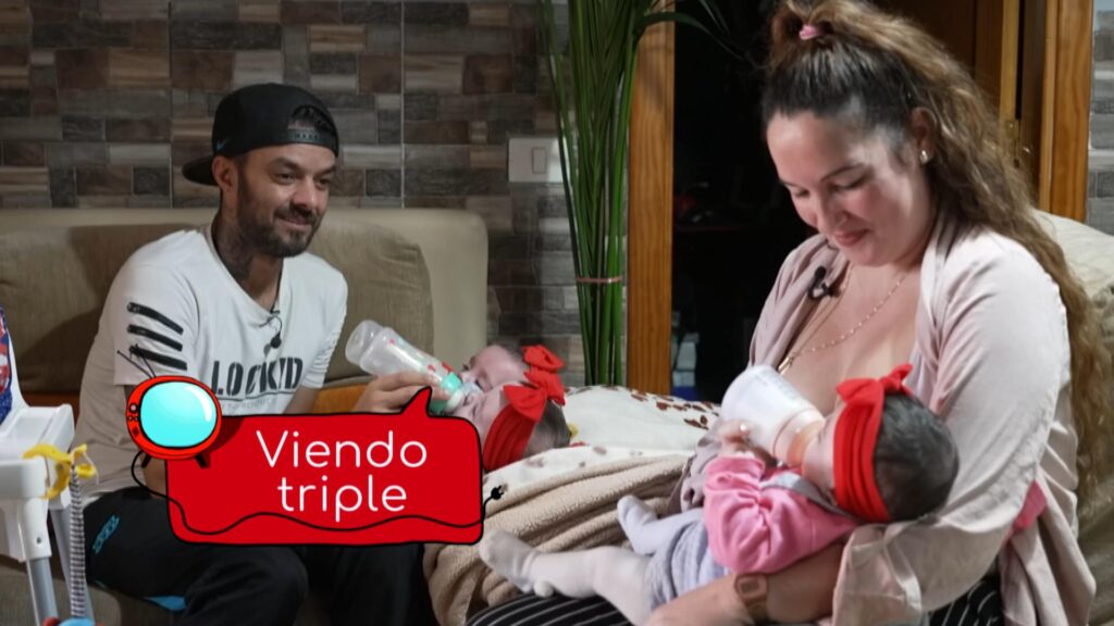 Miriam y Jose ven triple, y es que han llegado hasta sus vidas unas trillizas que a pesar de ocupar todo su tiempo y espacio, les hacen la vida mucho más bonita. Ahora son familia numerosa, ya que este trío se une a dos hijos que ya tenía la pareja, de 16 y 12 años. Miriam y Jose, lejos de agobiarse con esta familia de siete, están muy felices y se las apañan a las mil maravillas para salir adelante.