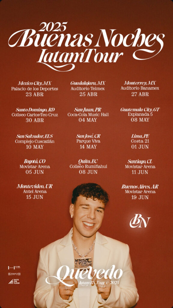 Quevedo lleva su gira Buenas Noches por Latinoamérica. La gira de Quevedo comenzará el 23 de abril en México y se prolongará hasta el 19 de junio en la que cerrará su gira latinoamericana en Argentina.