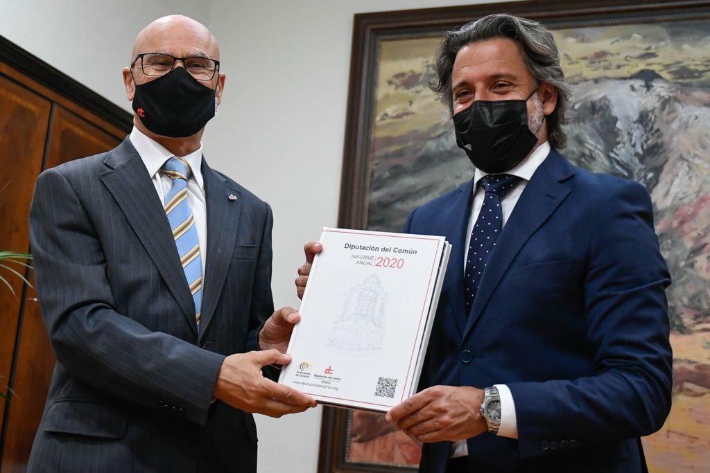 El Diputado del Común, Rafael Yanes, entregó este miércoles el Informe Anual 2020 de la Diputación del Común al presidente del Parlamento de Canarias, Gustavo Matos, y lo presentó ante los medios.