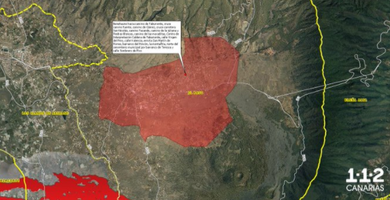 Las zonas afectadas son: Benahuno hacia camino de Taburiente; Cruce Camino Fuente, Camino de Gámez, Cruce carretera San Nicolás, Camino Tacande, Camino de La Juliana y Piedras Blancas, Camino Las Moradistas, Centro de Interpretación Caldera de Taburiente, Calles Virgen del Pino y Valencia, Ermita San Martín de Porres, Barranco del Rincón, La Montañita, Norte del cementerio por barranco de Tenisca y Calle Sombrero del Pico.