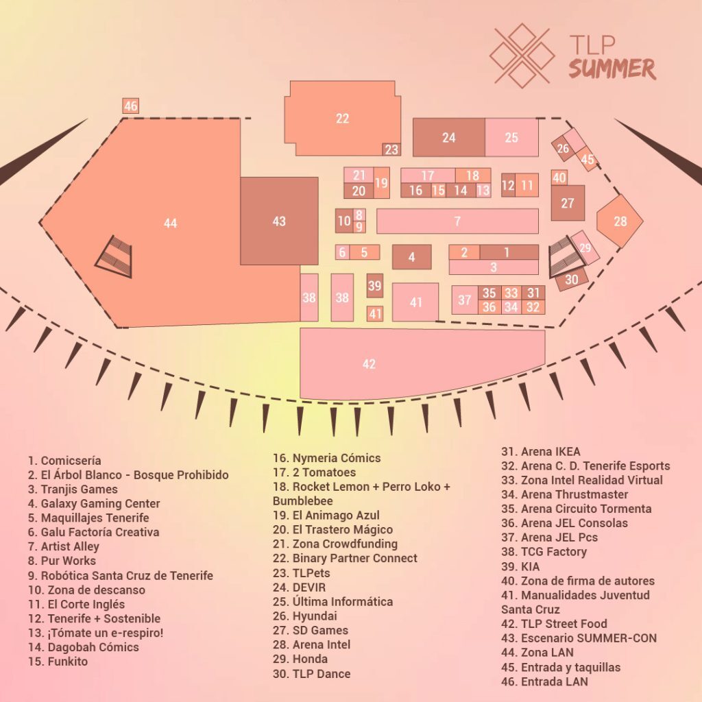 El Recinto Ferial de Santa Cruz de Tenerife se ha dividido en diferentes zonas temáticas en las que se han realizado diferentes actividades como torneos, concursos, venta de merchandising e incluso formación.